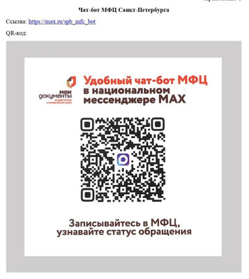 Чат-бот МФЦ Санкт-Петербурга: https://max.ru/spb_mfc_bot.